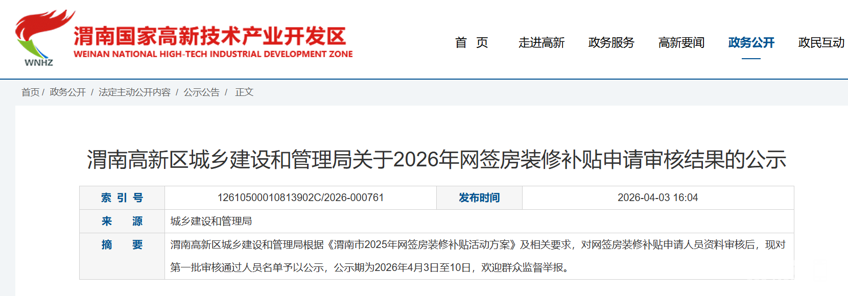 渭南高新区网签房装修补贴资格审核通过人员名单