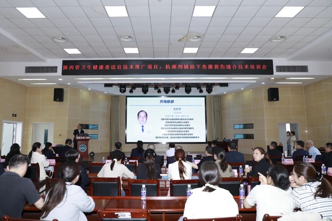 会议伊始,大会主席、渭南市第一医院眼科主任张胜利致开幕词。张主任同时担任渭南市医学会眼底病专业委员会主任委员,在致辞中指出,推广普及粘弹剂辅助下角膜裂伤缝合技术,对提升基层眼外伤急诊救治水平、规范手术操作、改善患者预后具有重要意义,期待通过本次培训实现技术下沉、经验共享、共同提升。